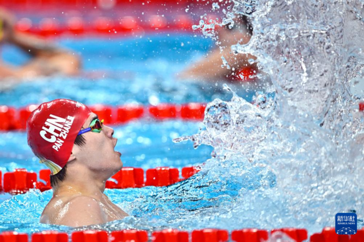 8月4日,中國隊選手潘展樂在比賽后慶祝。