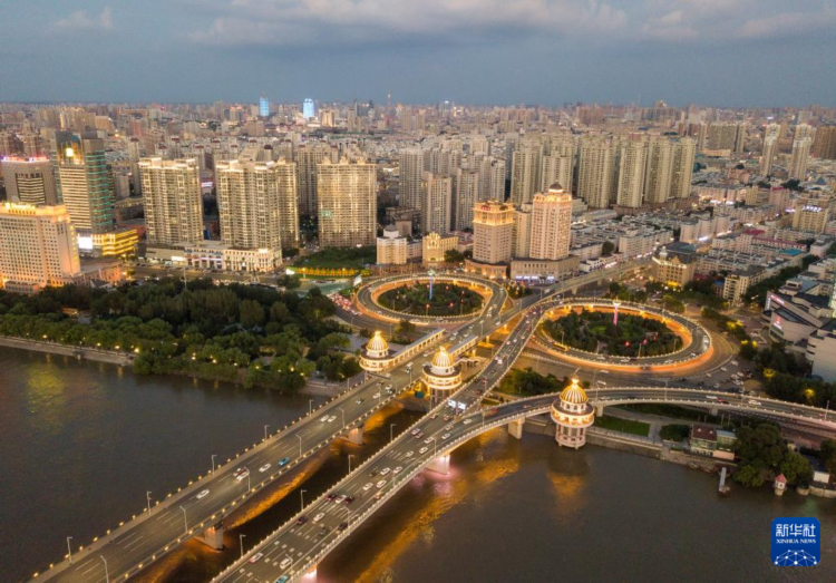 這是7月21日拍攝的中國(黑龍江)自由貿易試驗區哈爾濱片區的夜景(無人機照片)。