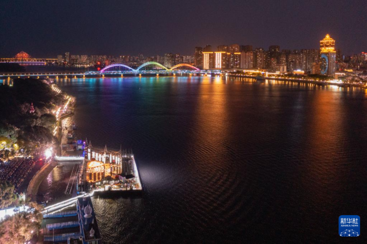 這是松花江哈爾濱段夜景(6月10日攝,無人機照片)。