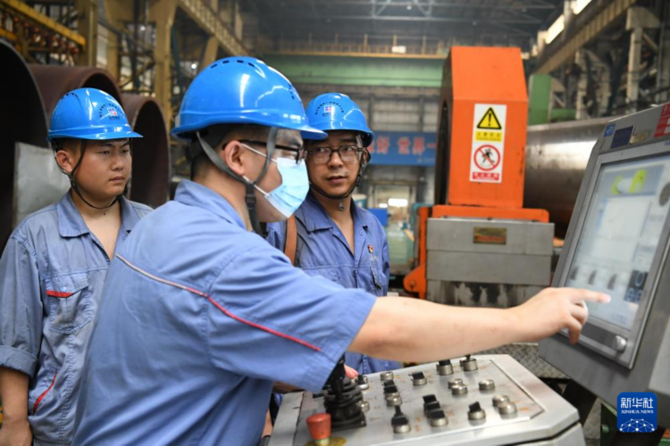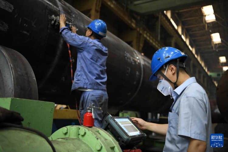 7月31日,在哈電鍋爐重容工廠數字化焊接車間,技術人員在產線工作。近年來,哈電集團哈爾濱鍋爐廠有限責任公司扎實有效推進近70項改革舉措,優化生產工藝與流程。其創建的多個創新平臺成為保障國家能源安全,解決國家重大科技問題的重要支撐,研制了高效超超臨界、二次再熱等世界領先新產品,為我國電力發展作出貢獻。