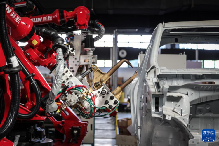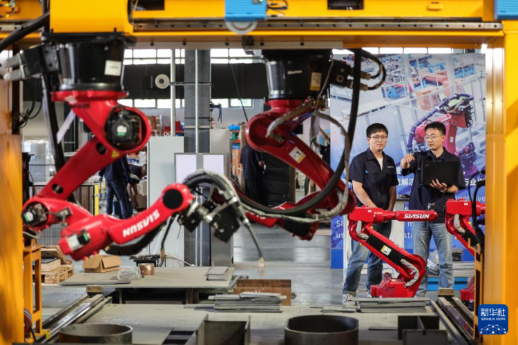 這是6月3日在遼寧沈陽拍攝的沈陽新松機器人自動化股份有限公司生產的點焊機器人。近年來,沈陽新松機器人自動化股份有限公司先后承擔了“面向智能工廠的工業機器人關鍵技術及應用”“高性能真空機械手及傳輸平臺研制”兩項遼寧省創新聯合體科技重大專項,實現在國產新能源汽車焊裝線應用的重大突破,真空機械手實現在國產半導體裝備關鍵環節的批量應用。