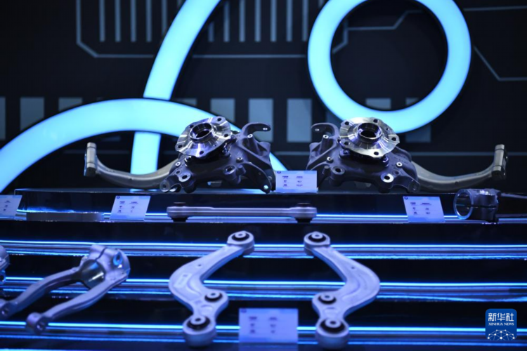 這是7月30日在長春吉林通用機械(集團)有限責任公司工業展館拍攝的汽車零部件成品。近年來,吉林通用機械(集團)有限責任公司通過數字化改造、智能化升級提高生產效率,提升產業競爭力,已成為全球鋁加工汽車輕量化零部件知名供應商,為奧迪、大眾、寶馬、奔馳、保時捷等多家品牌主機廠供應零件。