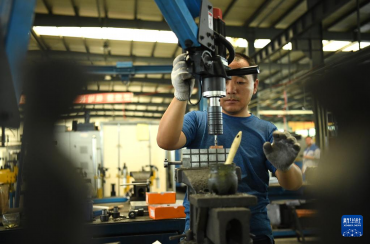7月30日,在長春吉林通用機械(集團)有限責任公司模具裝配生產線,鉗工在進行攻絲操作。近年來,吉林通用機械(集團)有限責任公司通過數字化改造、智能化升級提高生產效率,提升產業競爭力,已成為全球鋁加工汽車輕量化零部件知名供應商,為奧迪、大眾、寶馬、奔馳、保時捷等多家品牌主機廠供應零件。