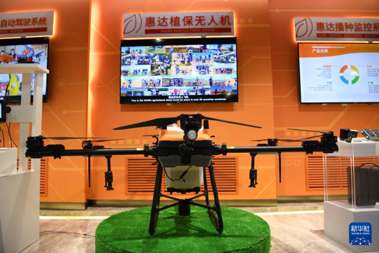 這是7月31日在黑龍江惠達科技股份有限公司展廳拍攝的農用無人機。黑龍江惠達科技股份有限公司是一家提供大田高效種植解決方案、研發農業耕種管收各階段智能化技術和產品的科技型企業。目前公司已有自主獨立研制生產的7大類總計20余種產品,包括北斗農機自動駕駛系統、農業無人機、智能播種系統等,現有發明專利、實用新型、外觀設計、軟件著作權等相關專利200余項。