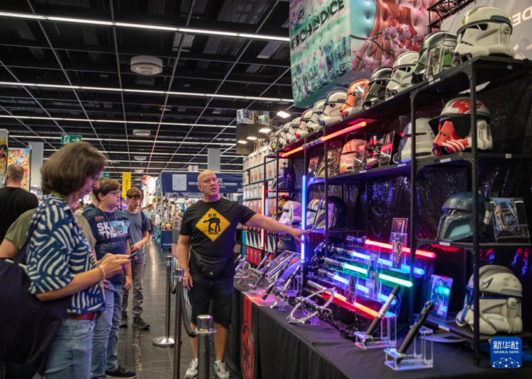 8月21日,人們在德國科隆舉辦的科隆國際游戲展上選購游戲周邊產品。
