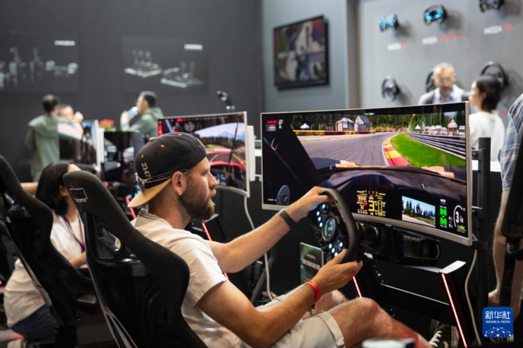 8月21日,人們在德國科隆舉辦的科隆國際游戲展上試玩游戲。