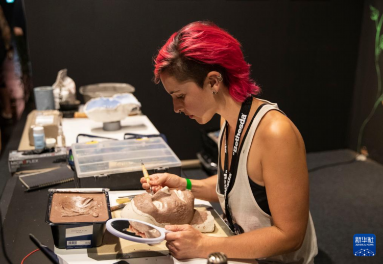 8月21日,一名女子在德國科隆舉辦的科隆國際游戲展上制作道具。