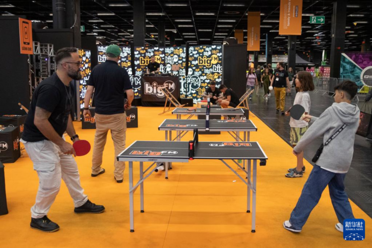 8月21日,人們在德國科隆舉辦的科隆國際游戲展上試玩迷你乒乓球。