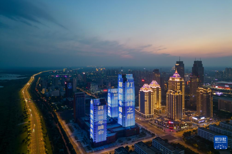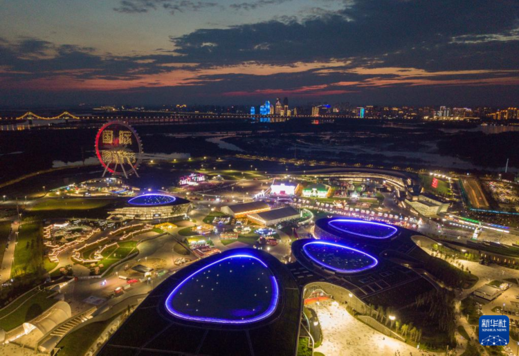 這是中國(黑龍江)自由貿(mào)易試驗(yàn)區(qū)哈爾濱片區(qū)的夜景(7月21日攝,無人機(jī)照片)。