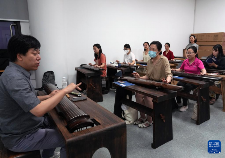 9月2日晚,在上海市群眾藝術館,夜校學員在古琴班上課。