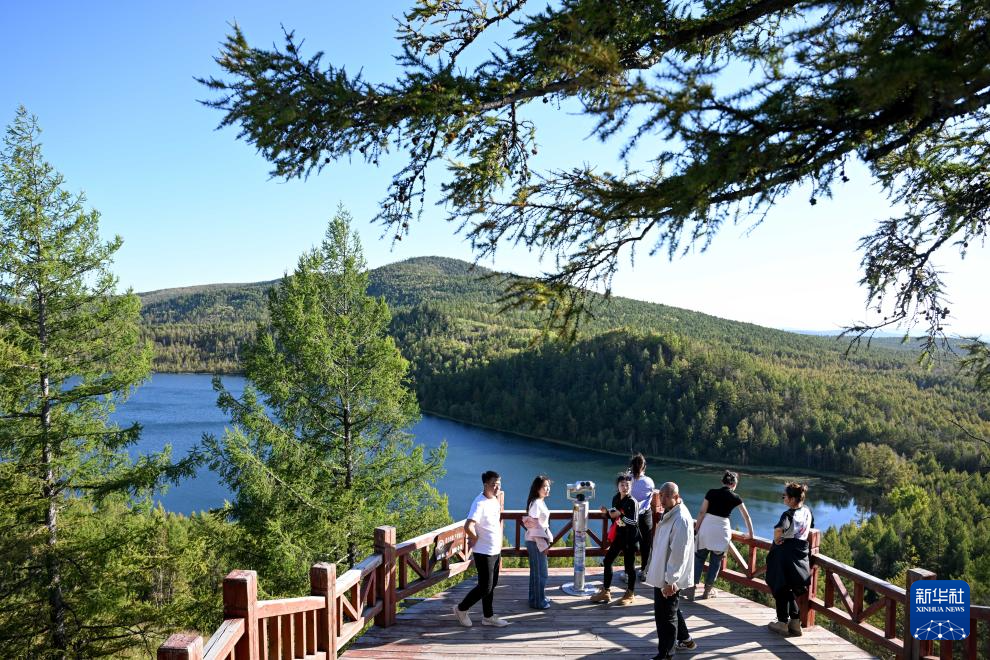 9月7日,游客在阿爾山國家森林公園駝峰嶺天池游玩。