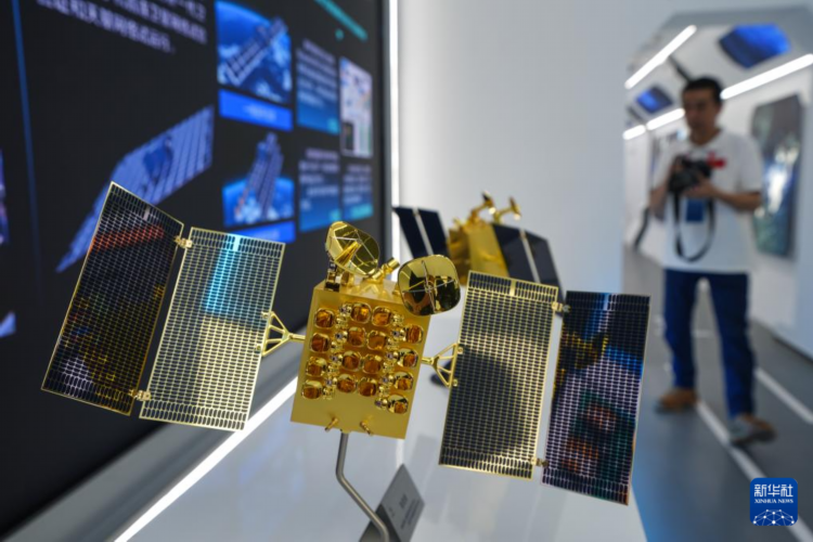 9月9日,觀眾在無錫商業航天展示館觀摩衛星模型。