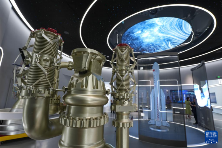9月9日在無錫商業航天展示館拍攝的火箭發動機模型。