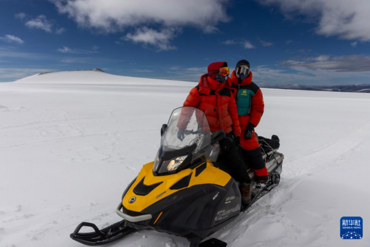 9月12日,科考隊員在雪地摩托上商量前往其他作業(yè)點的路線。