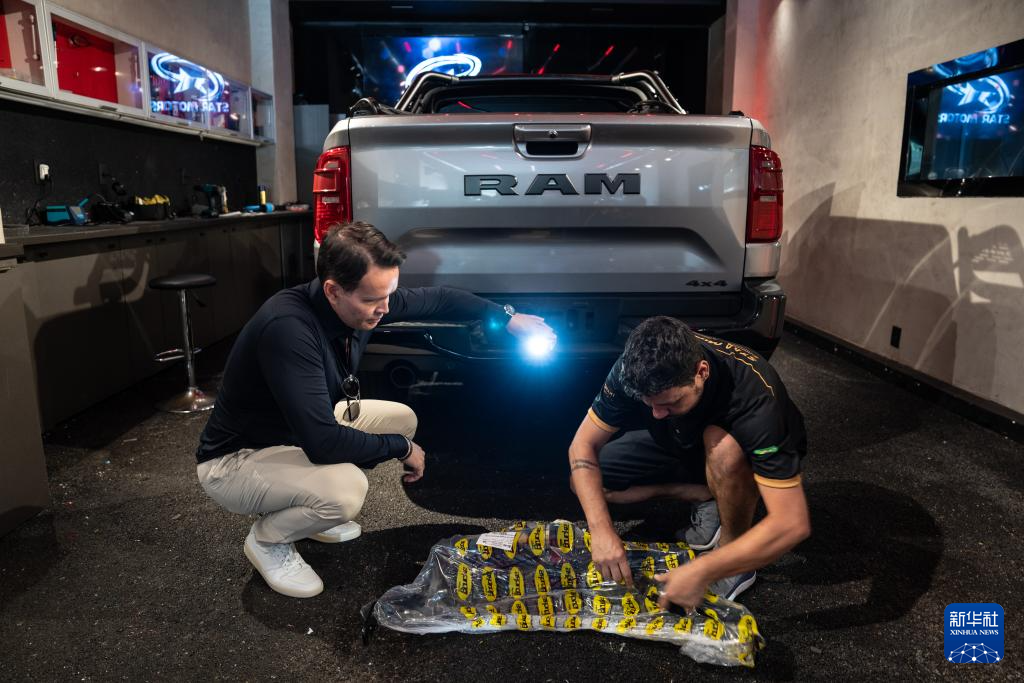 9月2日,費拉(左)在巴西里約熱內(nèi)盧的汽車改裝店中與工人交談。
