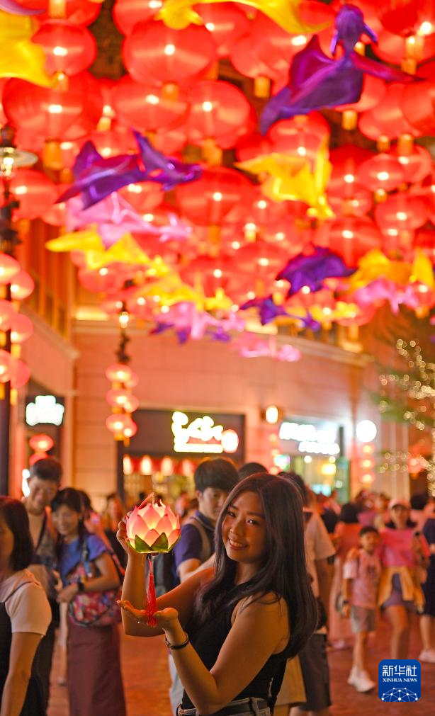 9月17日,人們在香港利東街賞燈,歡慶中秋佳節。