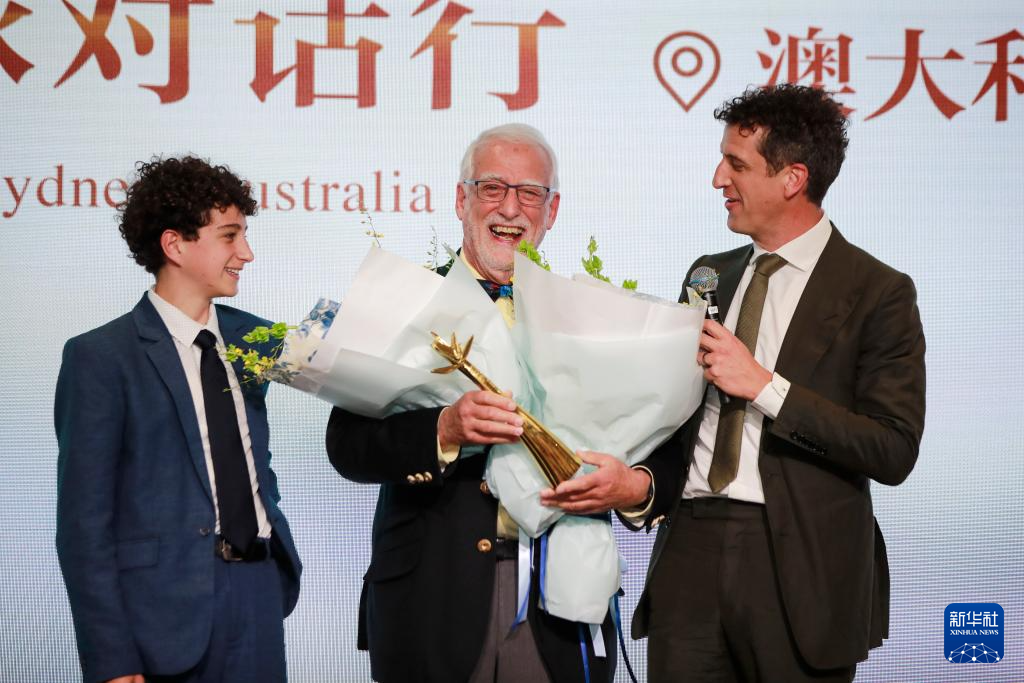 “蘭之約·話文明”全球?qū)υ捫校ò拇罄麃啠┗顒釉谙つ崤e行 9月12日,在澳大利亞悉尼,西悉尼大學(xué)澳洲中國文藝研究會兼職教授、首屆蘭花獎“友好使者獎”獲得者甘德瑞與家人合影。 “蘭之約·話文明”全球?qū)υ捫校ò拇罄麃啠┗顒?月12日在悉尼舉行。來自中澳兩國的政府官員、文化藝術(shù)界人士及高校智庫、民間組織和媒體等代表百余人,圍繞加強(qiáng)文化交流、擁抱多元文化進(jìn)行深入對話。 新華社記者 馬平 攝