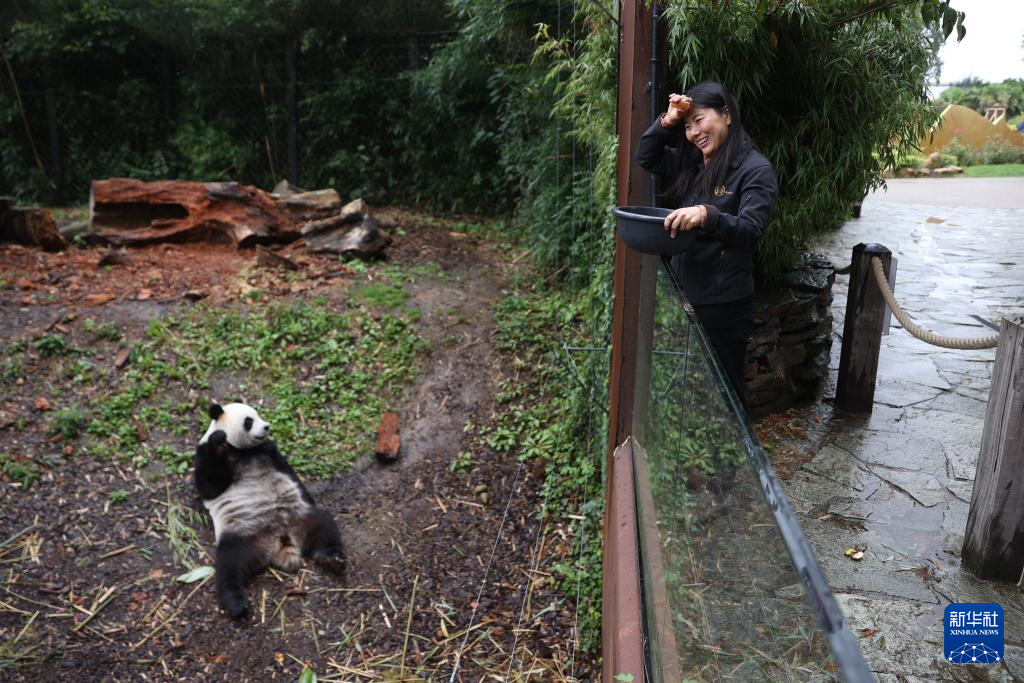 飼養(yǎng)員劉洋:我在比利時“養(yǎng)”大熊貓 9月9日,在位于比利時布呂熱萊特的天堂動物園,劉洋給大熊貓喂食。 劉洋是一名海外專職大熊貓飼養(yǎng)員。2014年2月,大熊貓“星徽”和“好好”作為中比友好使者從中國來到比利時,劉洋也陪伴它們遠(yuǎn)赴重洋。此后,大熊貓“好好”相繼產(chǎn)下雄性幼仔“天寶”和雙胞胎“寶弟”“寶妹”。十年來,劉洋一直悉心照料大熊貓們的旅居生活,把它們當(dāng)成自己的孩子一樣疼愛,產(chǎn)生了深厚感情。此外,她還和飼養(yǎng)團(tuán)隊(duì)的外方人員密切合作,一起研究大熊貓的生活習(xí)性和飲食規(guī)律,一同呵護(hù)憨態(tài)可掬的寶貝們健康成長。如今,五只大熊貓已成為比利時天堂動物園的“頂流”,深受當(dāng)?shù)孛癖娤矏郏瑢3虂砜此鼈兊挠慰徒j(luò)繹不絕。 新華社記者 趙丁喆 攝 |