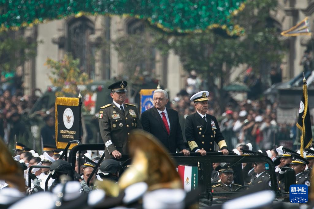 墨西哥舉行閱兵慶祝獨(dú)立日 9月16日,在墨西哥首都墨西哥城,墨西哥總統(tǒng)洛佩斯參加獨(dú)立日閱兵。 9月16日是墨西哥獨(dú)立日,墨西哥舉行閱兵活動,慶祝獨(dú)立戰(zhàn)爭爆發(fā)214周年。 新華社記者 李夢馨 攝
