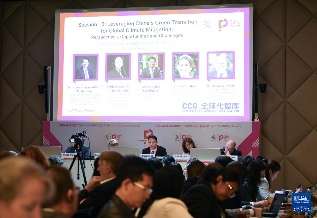 世貿(mào)組織研討會聚焦中國綠色轉(zhuǎn)型對應(yīng)對氣候變化的貢獻(xiàn) 9月10日,在瑞士日內(nèi)瓦,中國商務(wù)部原副部長、世貿(mào)組織原副總干事易小準(zhǔn)在研討會上發(fā)言。 在世界貿(mào)易組織2024年公共論壇期間,全球化智庫10日在瑞士日內(nèi)瓦舉辦題為“利用中國綠色轉(zhuǎn)型減緩全球氣候變化:視角、機(jī)遇與挑戰(zhàn)”的研討會,聚焦貿(mào)易政策與氣候變化應(yīng)對以及中國在該領(lǐng)域的積極貢獻(xiàn)。 新華社記者 連漪 攝