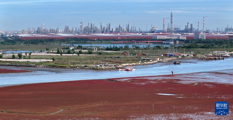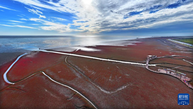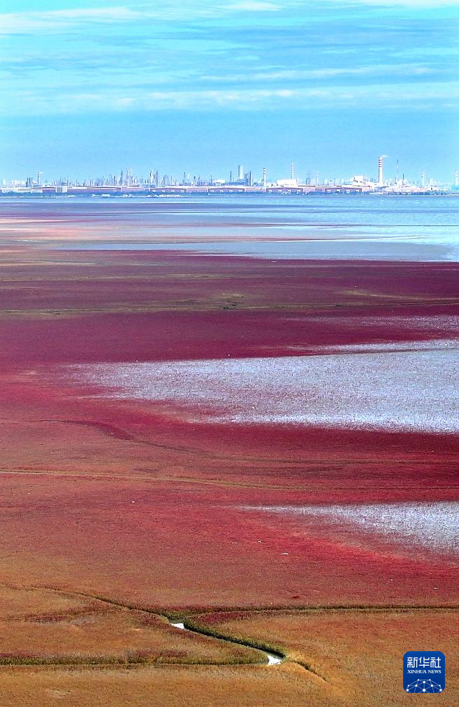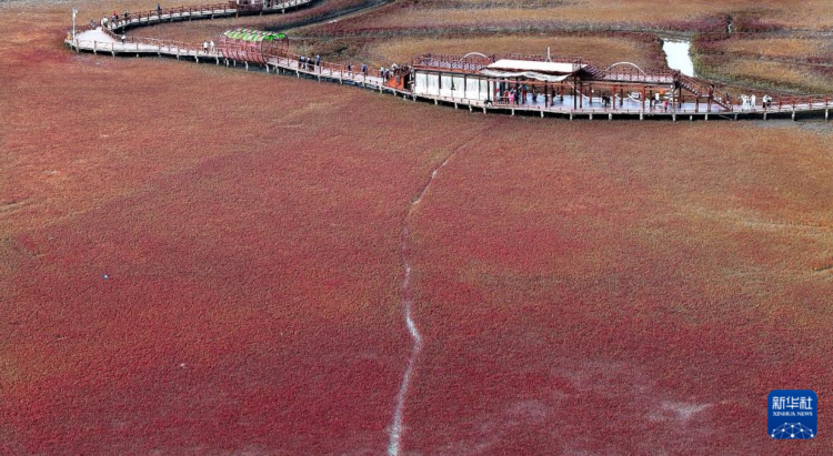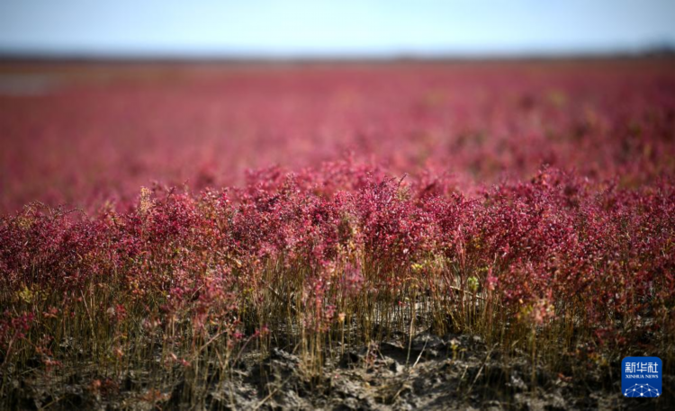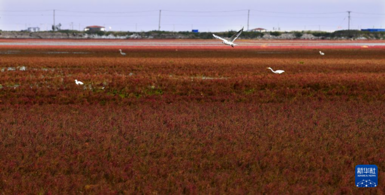 9月,行駛在中國最北海岸線旁的228國道上,一片“紅色海灘”呈現在眼前。