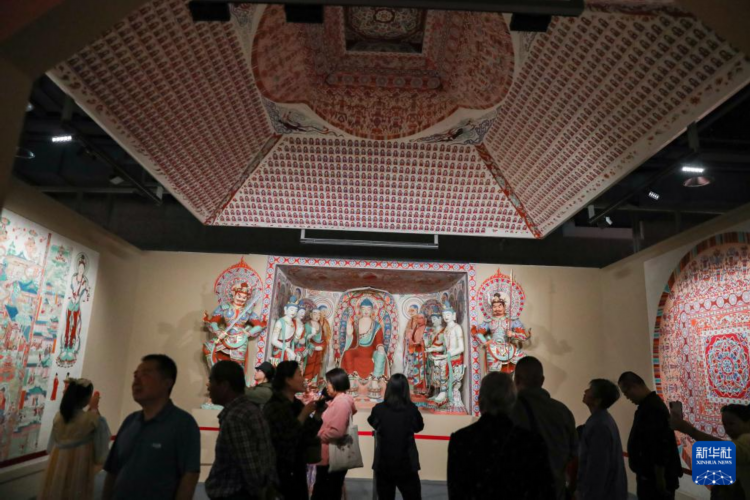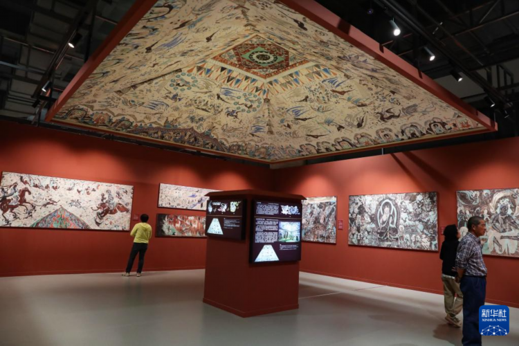 9月22日,在敦煌研究院“典范”“高地”建設成果展上,游客參觀莫高窟第172窟整窟復原臨摹成果。