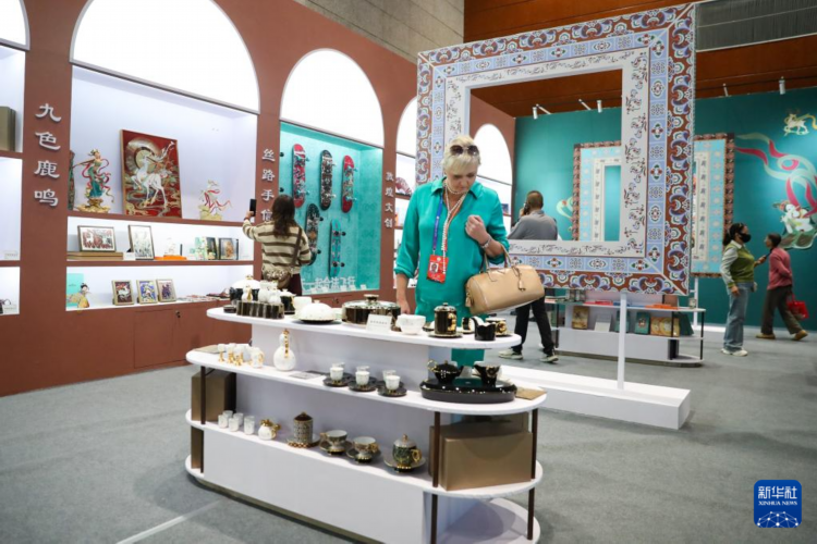 9月22日,游客在參觀交響絲路·多彩華章——絲綢之路文化融合展。