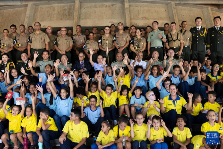 9月23日,在巴西首都巴西利亞高等防務(wù)學(xué)院舉行的“中國日”活動上,中國人民解放軍國際傳播代表團的軍樂分隊和巴總統(tǒng)衛(wèi)隊軍樂團舉行聯(lián)合演出后與觀眾合影。