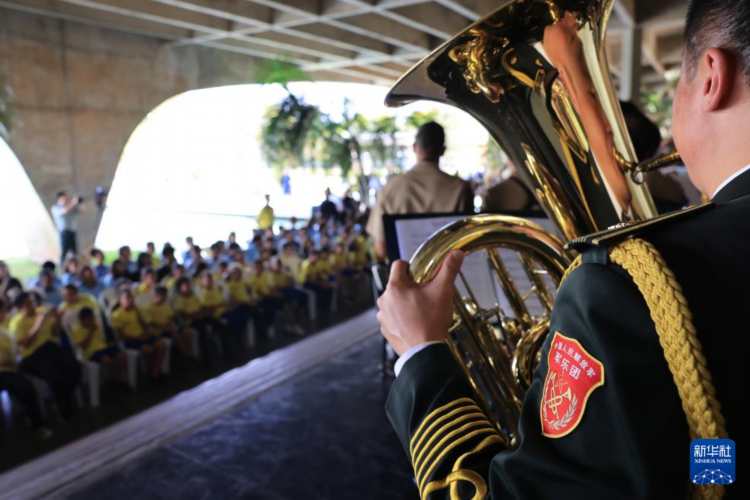 9月23日,在巴西首都巴西利亞高等防務(wù)學(xué)院舉行的“中國日”活動上,中國人民解放軍國際傳播代表團的軍樂分隊與巴總統(tǒng)衛(wèi)隊軍樂團舉行聯(lián)合演出。