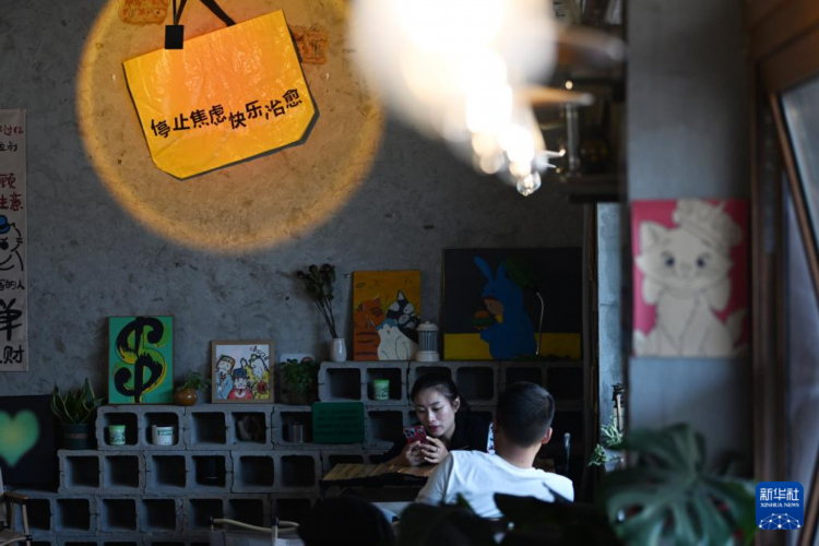 游客在西井峪村的餐廳內休息(10月12日攝)。