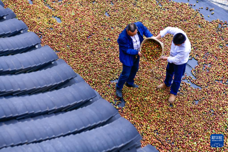 10月15日,工人在龍里縣頤光山林油茶生態園晾曬油茶果。
