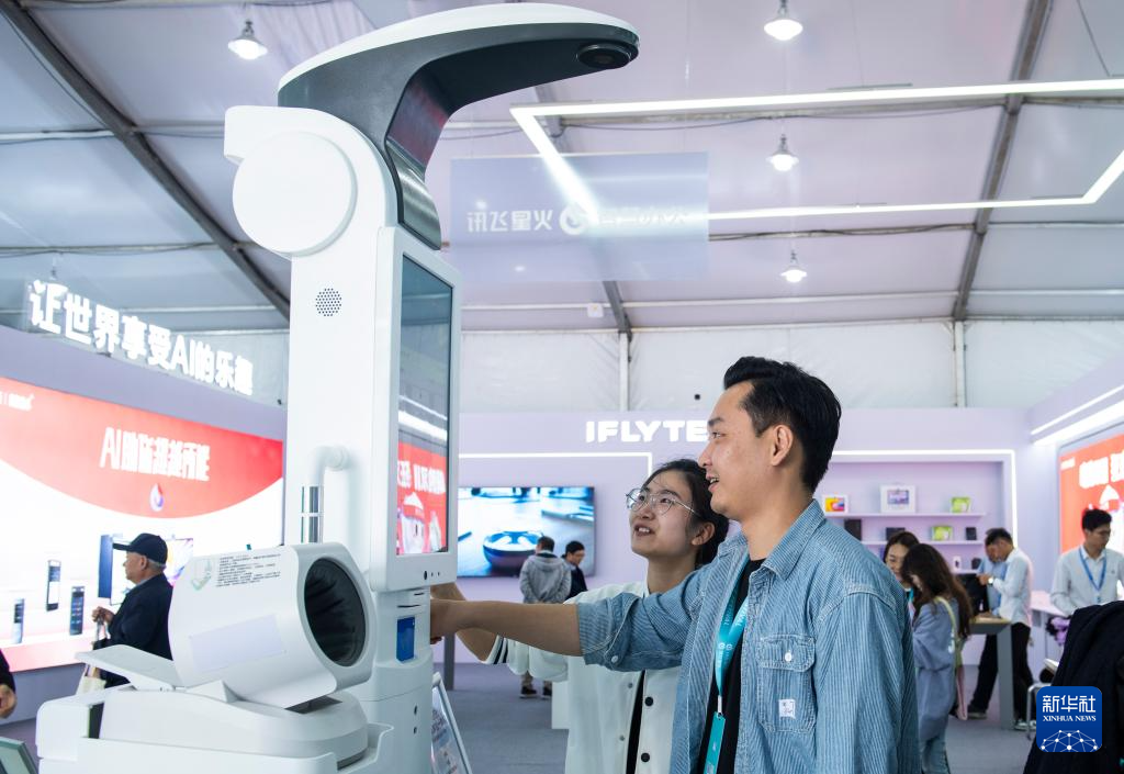10月24日,觀眾在第七屆世界聲博會上體驗一款健康體檢一體機。 新華社記者 傅天 攝