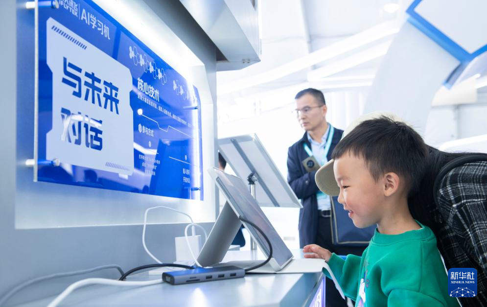 10月24日,一名兒童在第七屆世界聲博會上體驗一款AI學習機。 新華社記者 傅天 攝 |