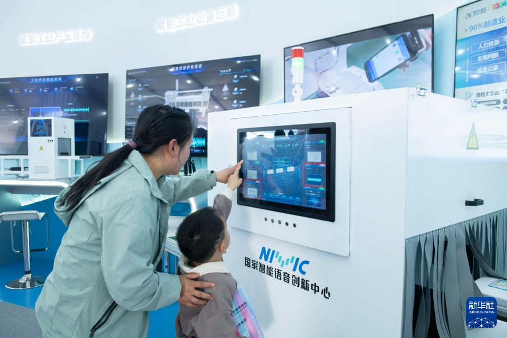 10月24日,觀眾在第七屆世界聲博會上參觀一款工業AI空調質檢系統。 新華社記者 傅天 攝