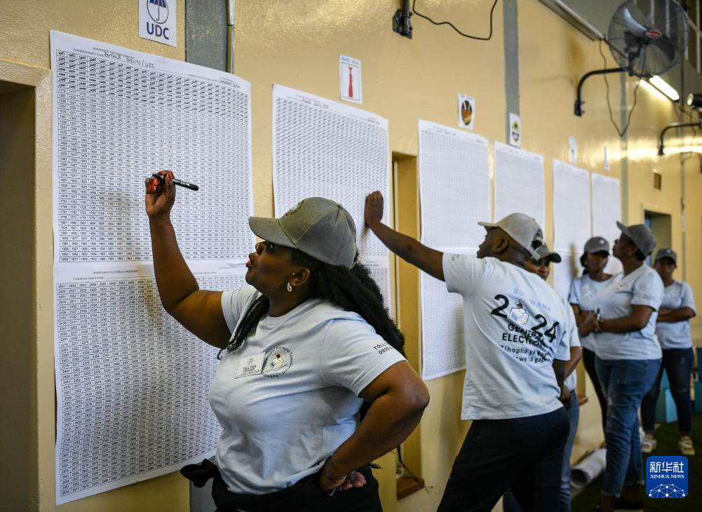 10月31日,工作人員在博茨瓦納首都哈博羅內(nèi)的一處投票站內(nèi)統(tǒng)計(jì)選票。