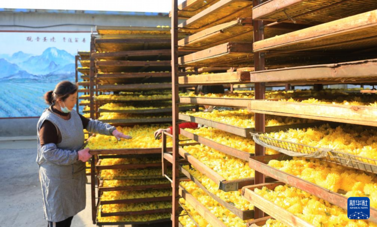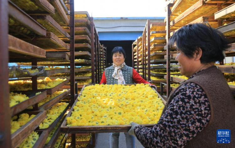 11月7日,在新泰市翟鎮,農戶在加工剛采摘的菊花。