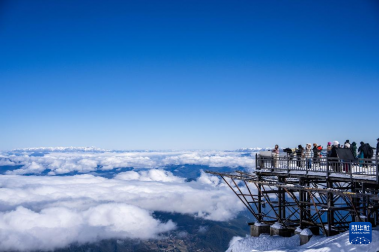 11月9日,游客在麗江市玉龍雪山上觀看云海。