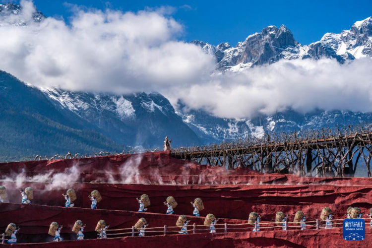 11月9日在麗江市玉龍雪山景區拍攝的《印象麗江》演出現場。