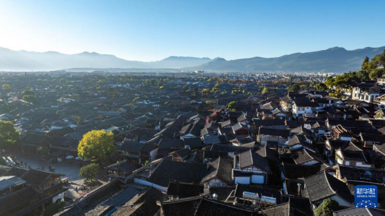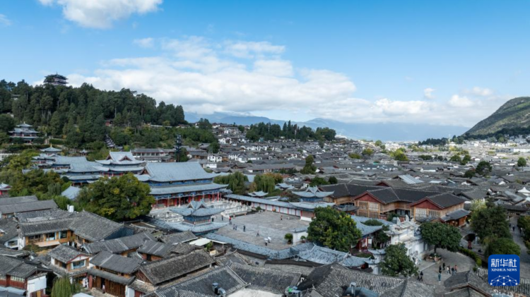 11月10日,游客在麗江古城游玩(無人機照片)。