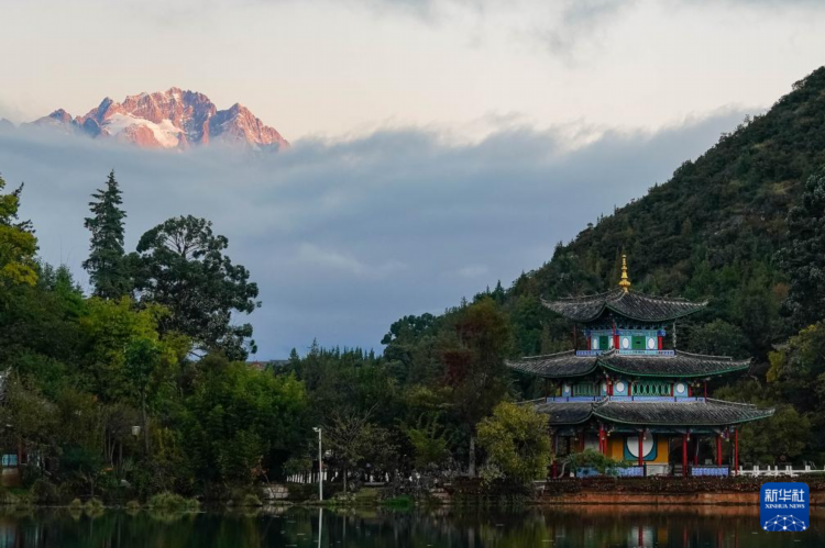 11月11日在麗江市黑龍潭公園拍攝的玉龍雪山“日照金山”美景。