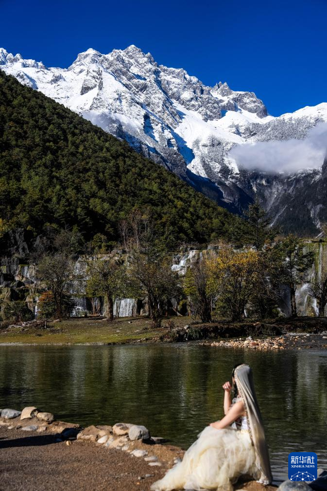 11月9日,游客在麗江市玉龍雪山景區藍月谷拍照。