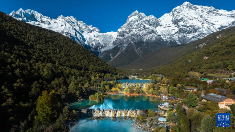 這是11月9日拍攝的麗江市玉龍雪山景區藍月谷風光(無人機照片)。
