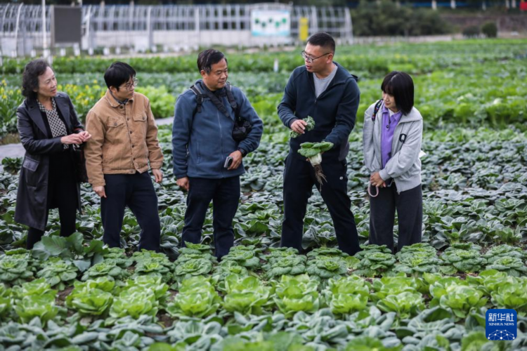 11月18日,在浙江省杭州市錢塘區的“勿忘農集團科研中心”,杭城市民代表、杭州市農業農村局的農技專家參觀“陽臺菜園”品種展,交流“陽臺菜園”種植心得。