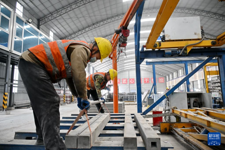 11月19日,中鐵十一局集團工人在位于河北省南宮市的雄商高鐵站前六標段混凝土構配件智能預制中心內工作。