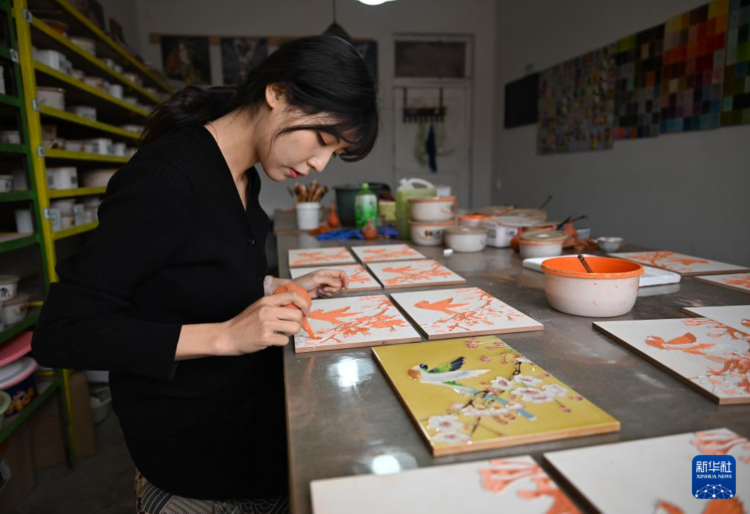 在洛陽花城美陶工作室,今年27歲的成果是河南省洛陽市非物質文化遺產三彩壁畫制作技藝的第五代傳承人。她自幼跟隨父親學習繪畫,16歲時開始和父親一起參與三彩壁畫的制作。通過不斷實踐與積累,成果目前已能夠熟練掌握畫稿、扎稿、立線、施釉、燒制等三彩壁畫制作技藝的關鍵步驟。