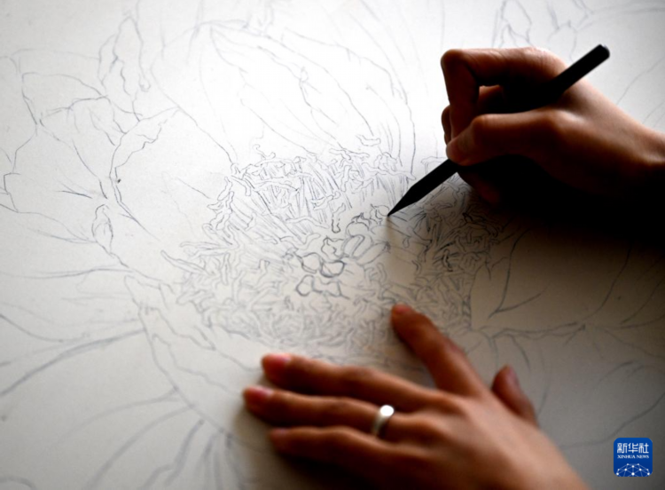 12月3日,在洛陽花城美陶工作室,成果在畫稿。