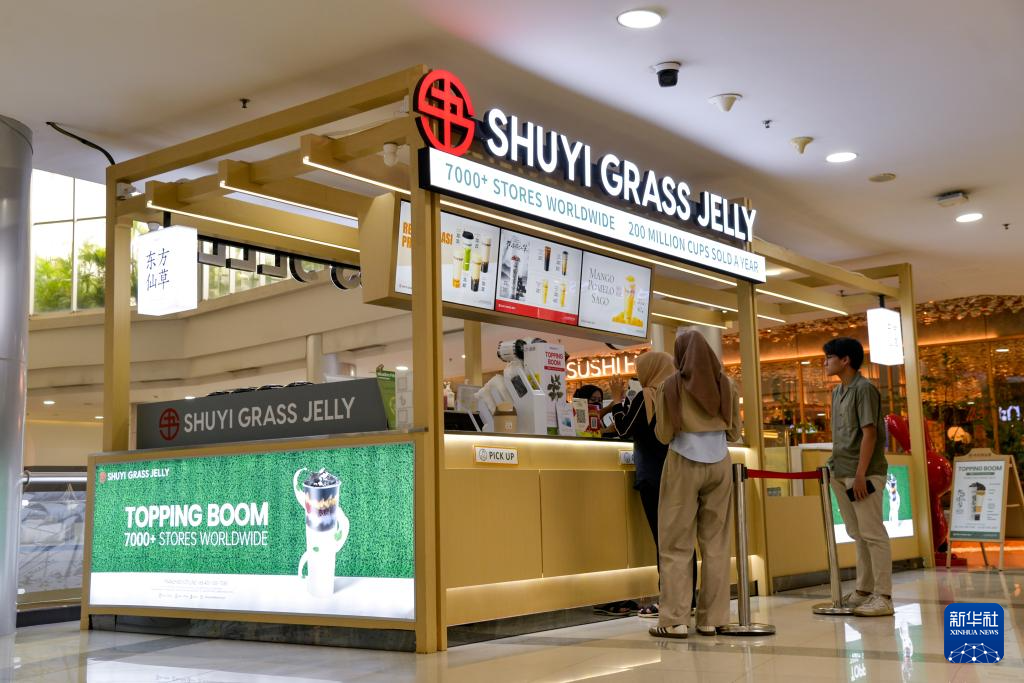 11月28日,在印度尼西亞德波,顧客在一家書亦燒仙草門店購買飲品。 新華社記者 徐欽 攝