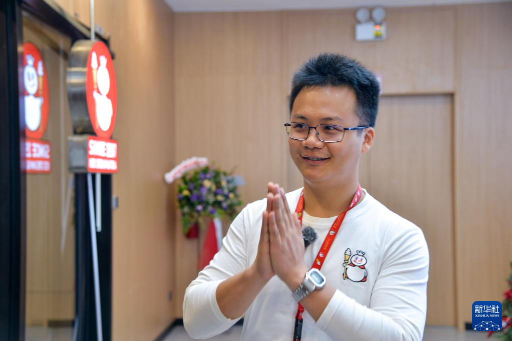 11月29日,在印度尼西亞雅加達蜜雪冰城印尼公司,蜜雪冰城印尼公司招商經理安迪·梅特里·哈坦托接受新華社記者采訪。 新華社記者 徐欽 攝