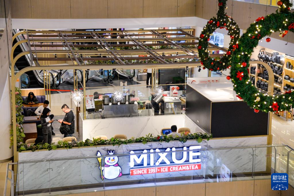 這是11月29日在印度尼西亞雅加達拍攝的一家蜜雪冰城門店。 新華社記者 徐欽 攝