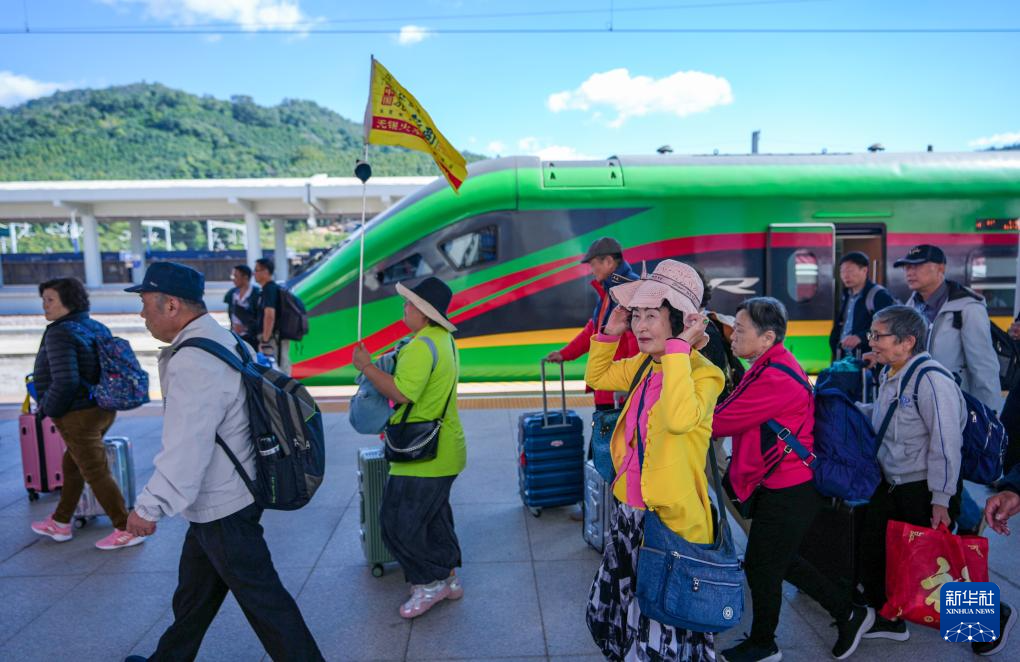 中老鐵路開通運(yùn)營三年 發(fā)送旅客超4300萬人次 12月3日,旅客乘坐列車抵達(dá)中老鐵路磨憨站。 新華社記者 陳欣波 攝